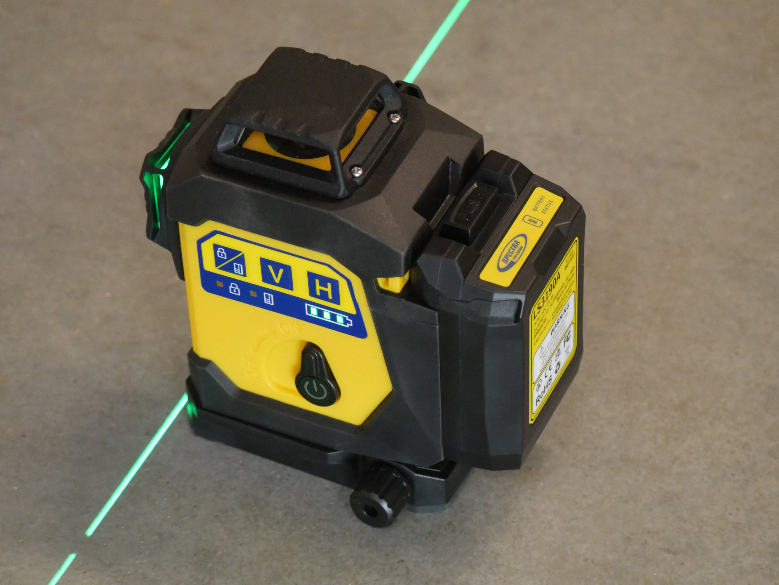 - Tre kraftige 360° grønne laserplan (1 horisontal og 2 vertikale) gir maksimal dekning og svært god synlighet ved både horisontale og vertikale oppgaver.